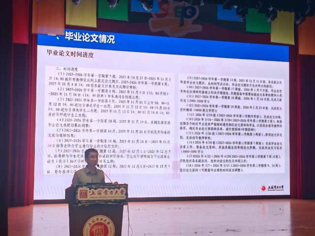 胡伟介绍了毕业班教学安排,结合案例详尽讲解培养计划、毕业实践、毕业论文、毕业审核等时间进度和各环节要求,并特别强调要重视完成创新创业和劳动教育学分。鼓励同学们学业就业两不误,行稳致远,进而有为。