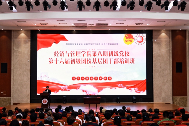 10月20日,第八期初级党校、第十六届初级团校暨基层团干部培训班开幕式在国歌的旋律中缓缓拉开序幕,经管学院专职组织员周颖进行了开幕致辞,希望学员们珍惜这一次的培训活动,积极求知、勇于探索实践,求真务实,努力成长为具备坚定信念和坚韧意志的杰出青年才俊,并以实际行动来诠释经管青年的勇敢与担当。