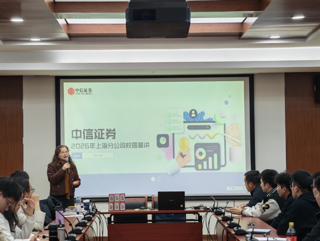 2025年11月13日,中信证券股份有限公司上海分公司副总经理陈哲一行到访MG冰球突破官网网站,双方围绕人才培养、实习基地建设、校园招聘等议题进行了深入交流,并面向全校学生举办了专场校园宣讲会。此次活动是经管学院持续推进“访企拓岗促就业”专项行动的重要举措,为深化校企合作、促进学生高质量就业搭建了有效平台。