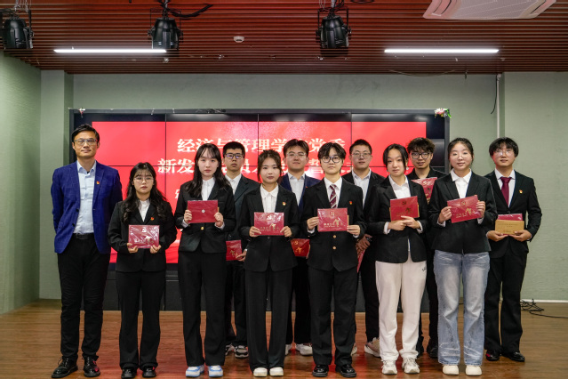 宣誓结束后,预备党员代表杨林茵上台发言,代表全体新发展党员表初心、立决心。她表示:“今日光荣迈入党员行列,我们必将以共产党员的最高标准严格要求自己,在日常学习生活中践行入党初心,在担当作为中履行誓言承诺,让青春在为国家、为人民的奉献中绽放璀璨光彩。”